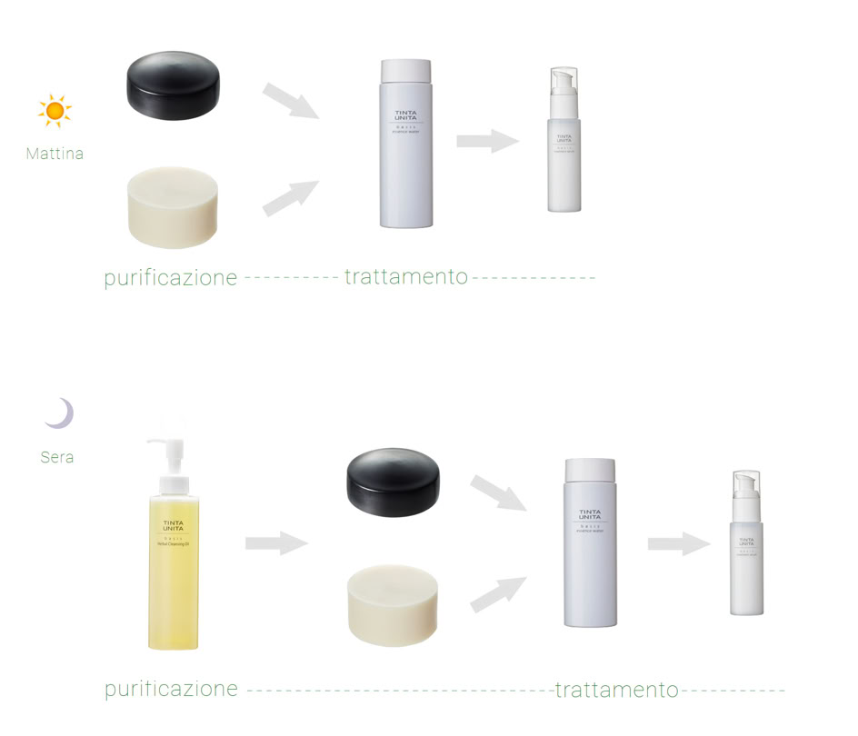 Le nostre linee di prodotti permettono di ottimizzare le fasi personalizzandole sulla base del tipo di pelle e del momento di applicazione.